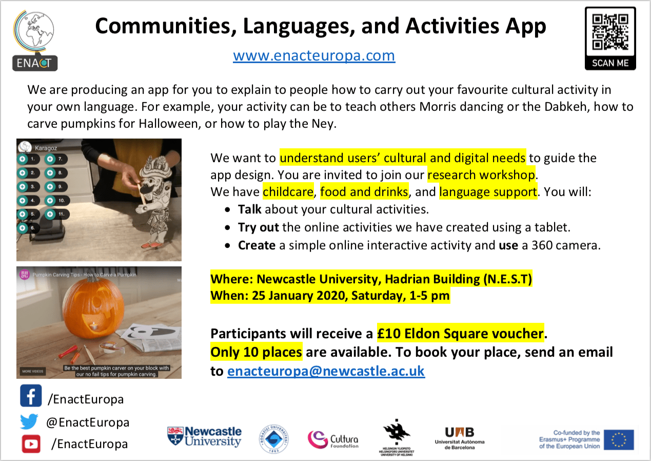 İngiltere çalıştayı 25 Ocak 2020'de olacak. Yer ayırtmak için lütfen bize bir e-posta gönderin: enacteuropa@newcastle.ac.uk